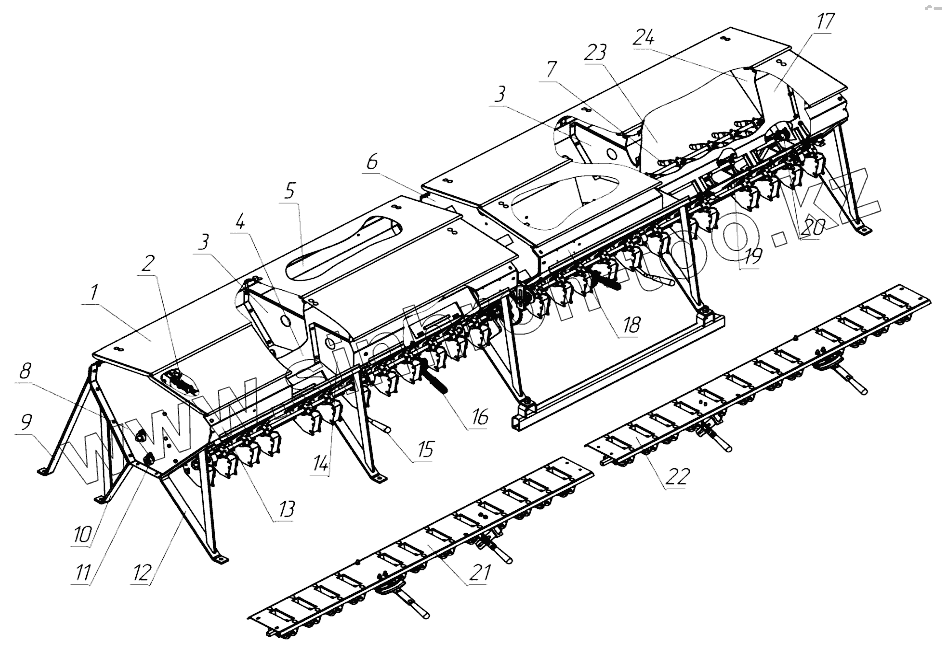 Каталог запасных частей к технике: Красная Звезда СЗТ-3,6А "Астра". Ящик зернотуковый СЕТ 00.1150А