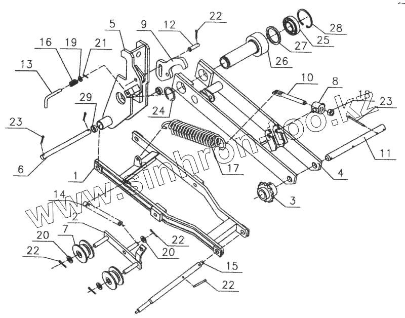 Каталог запасных частей к технике: Красная Звезда УПС-12. Поводковая группа секции 509.046.1500