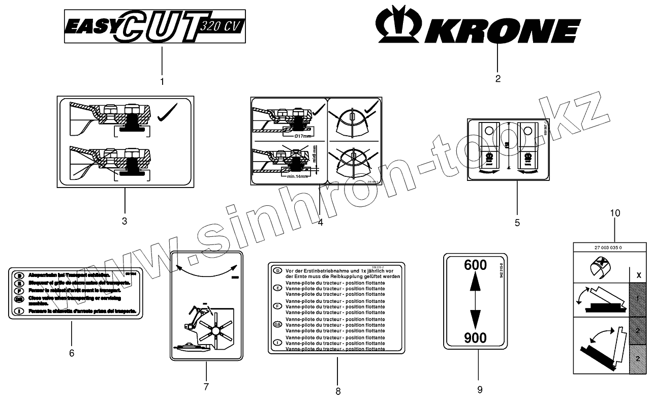 Каталог запасных частей к технике: KRONE 280CV-Q, 320CV-Q, 280CRI-Q. General information labels