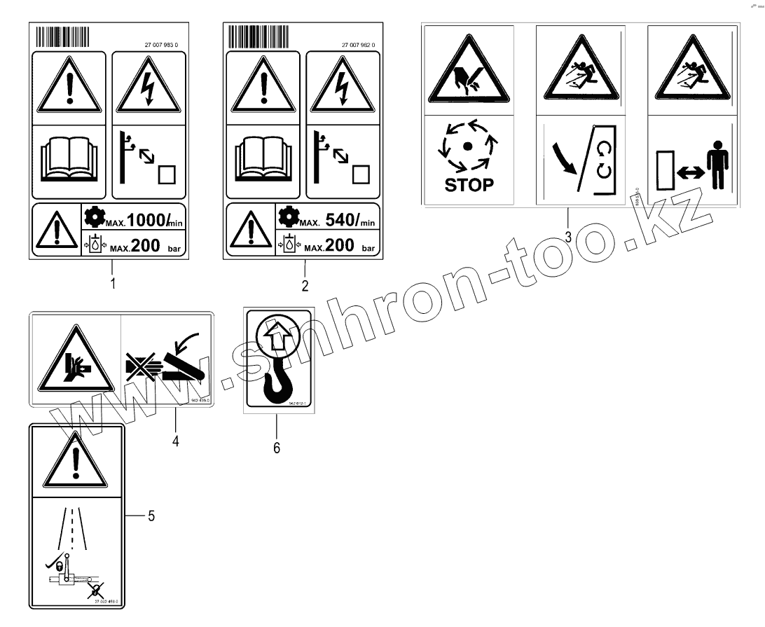 Каталог запасных частей к технике: KRONE ActiveMow R200. Warning signs