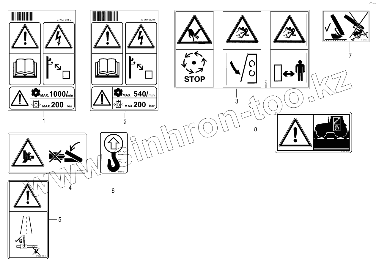 Каталог запасных частей к технике: KRONE ActiveMow R280. Warning signs