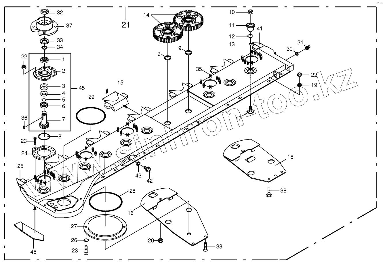 | 45 | 002302641 | Bearing housing-10 hole, cpl. | |