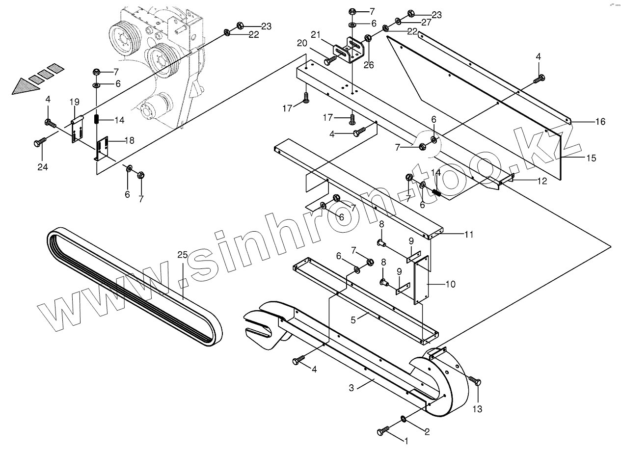 Каталог запасных частей к технике: KRONE BIG-M-400. Belt gurd located - left / right