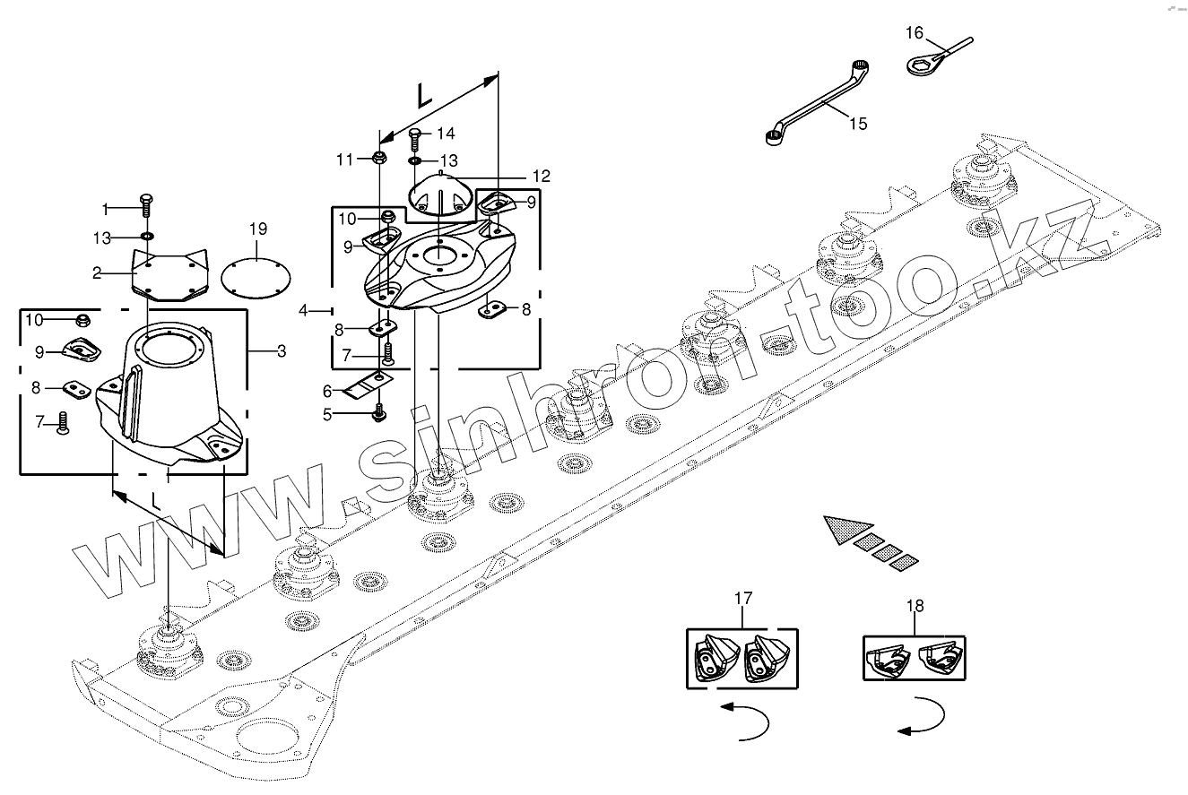 Каталог запасных частей к технике: KRONE BIG-M-400. Blade fastening - front / lateral-CRI