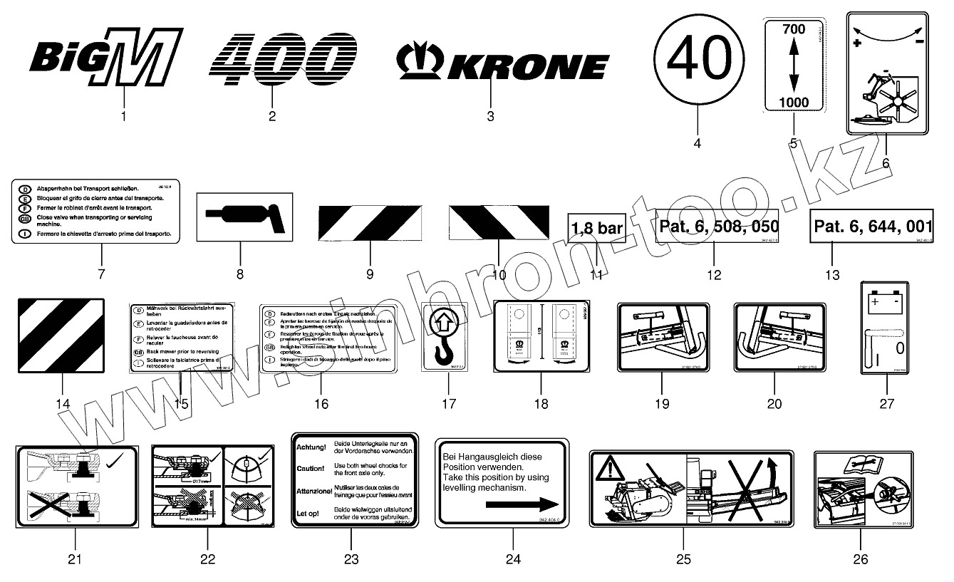 Каталог запасных частей к технике: KRONE BIG-M-400. General information labels