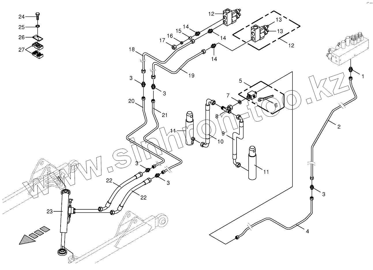 Каталог запасных частей к технике: KRONE BIG-M-400. Hydraulics - front mower / hillside