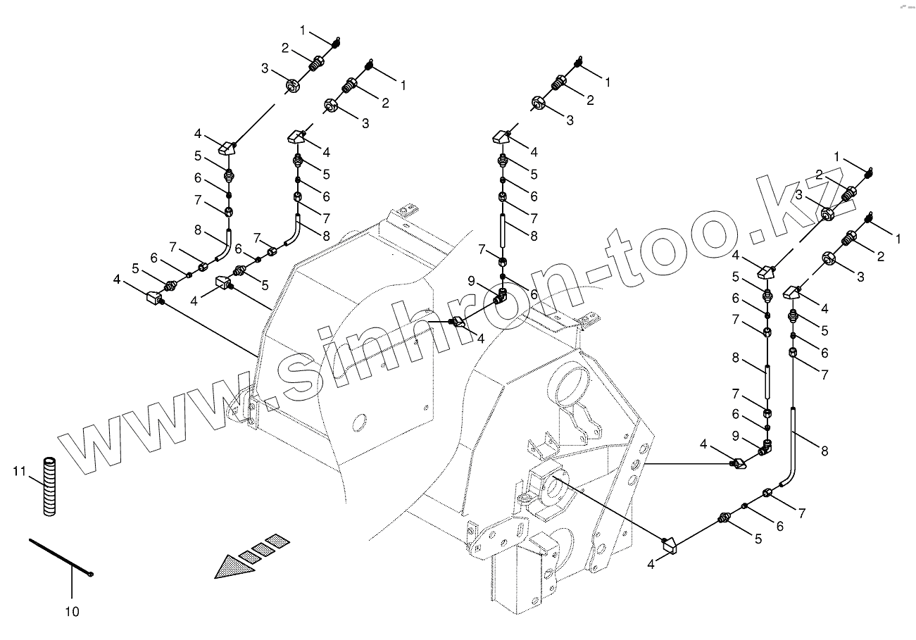 Каталог запасных частей к технике: KRONE BIG-M-400. Lubricating line / grease - lateral-CRI