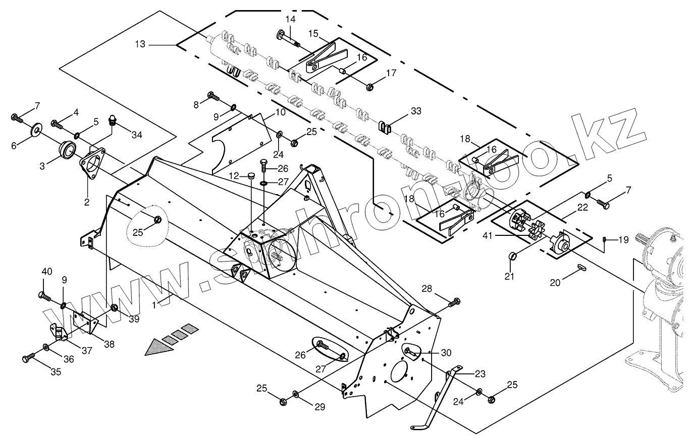 Каталог запасных частей к технике: KRONE BIG-M-400. Tine conditioner housing/tine conditiner - front