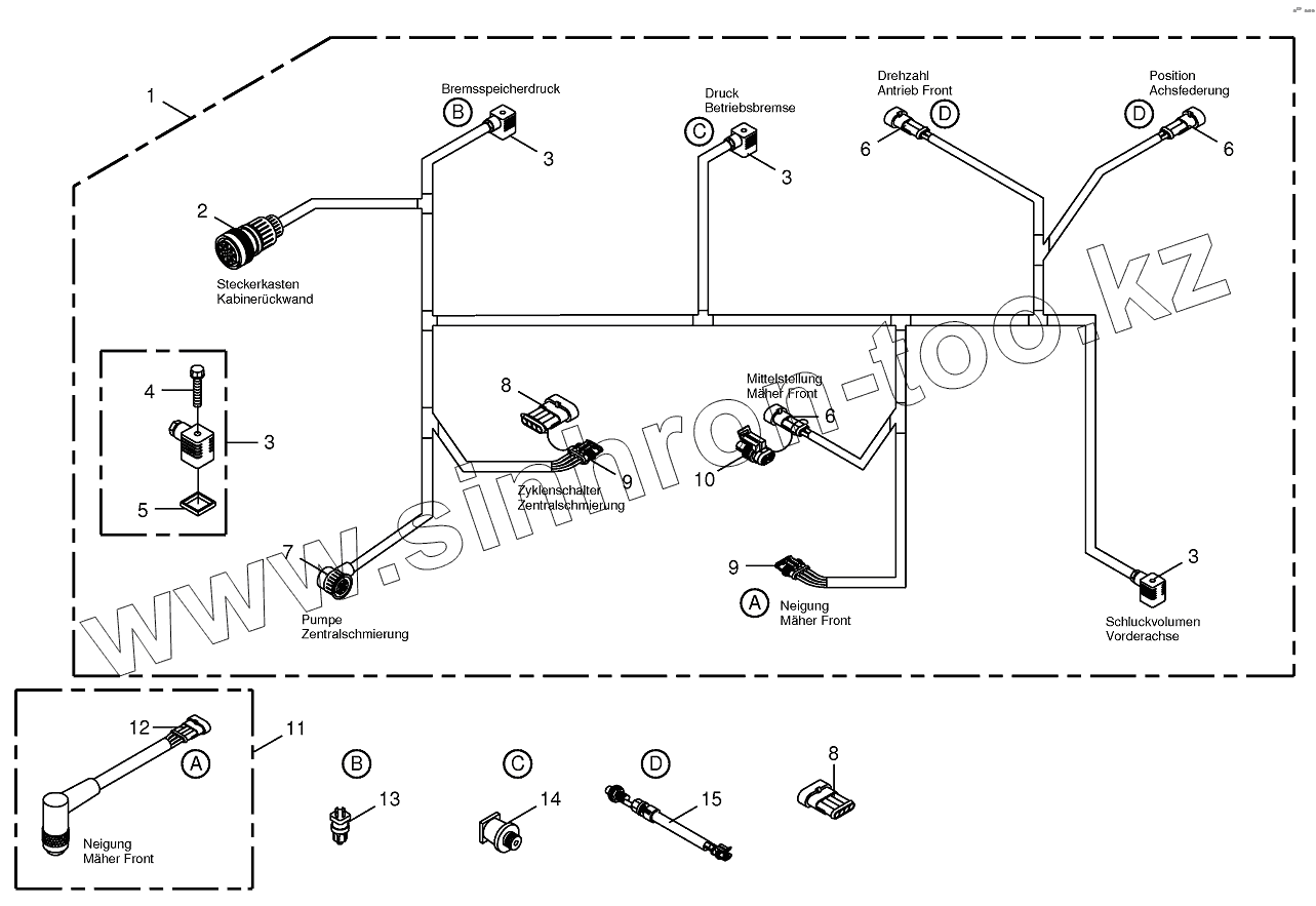 Каталог запасных частей к технике: KRONE BIG-M-400. Wiring Harness - front
