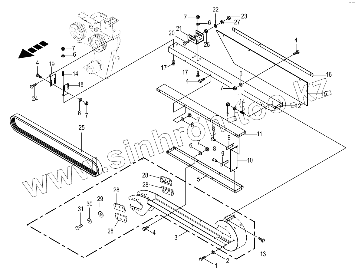Каталог запасных частей к технике: KRONE BIG-M-420. Belt gurd located-left/right