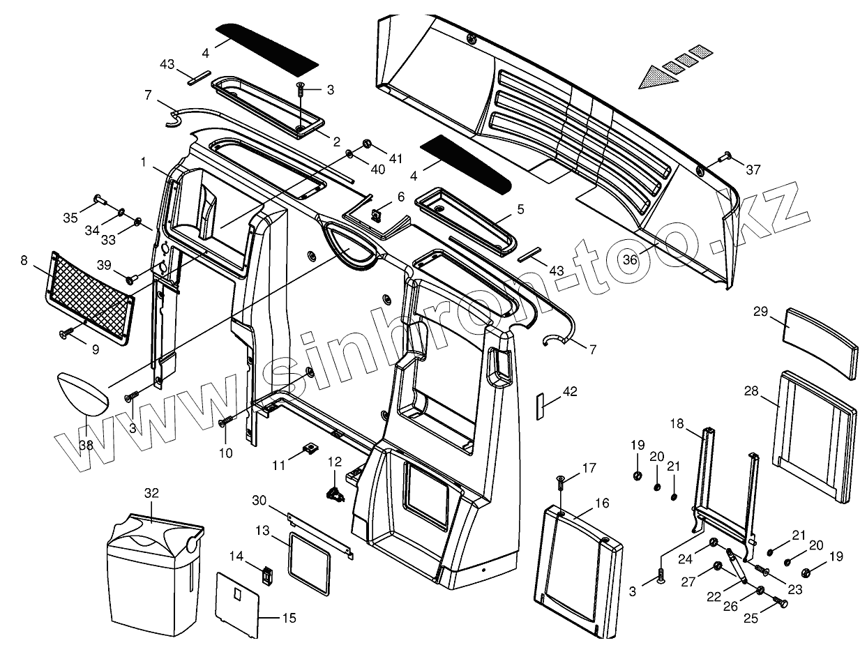 Каталог запасных частей к технике: KRONE BIG-M-420. Cab-rear covering/passenger seat