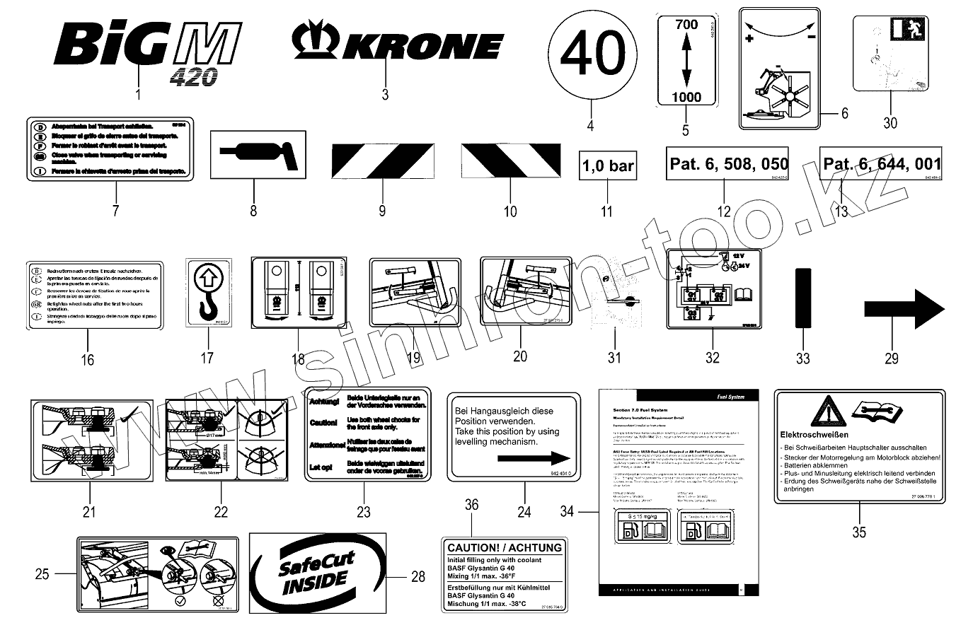 Каталог запасных частей к технике: KRONE BIG-M-420. General information labels