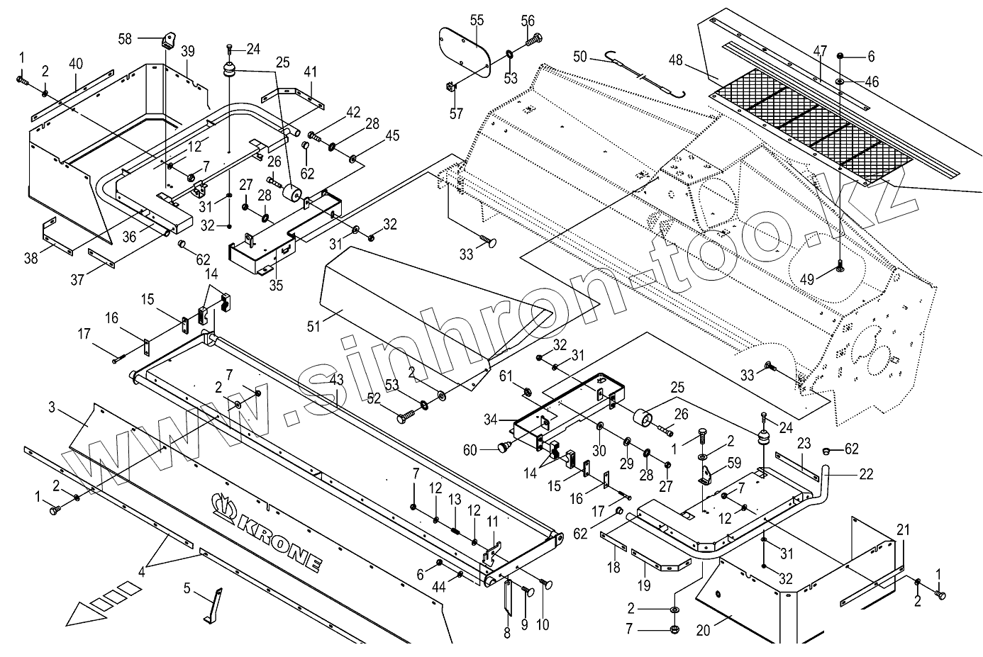 Каталог запасных частей к технике: KRONE BIG-M-420. Guard for mower beam-front