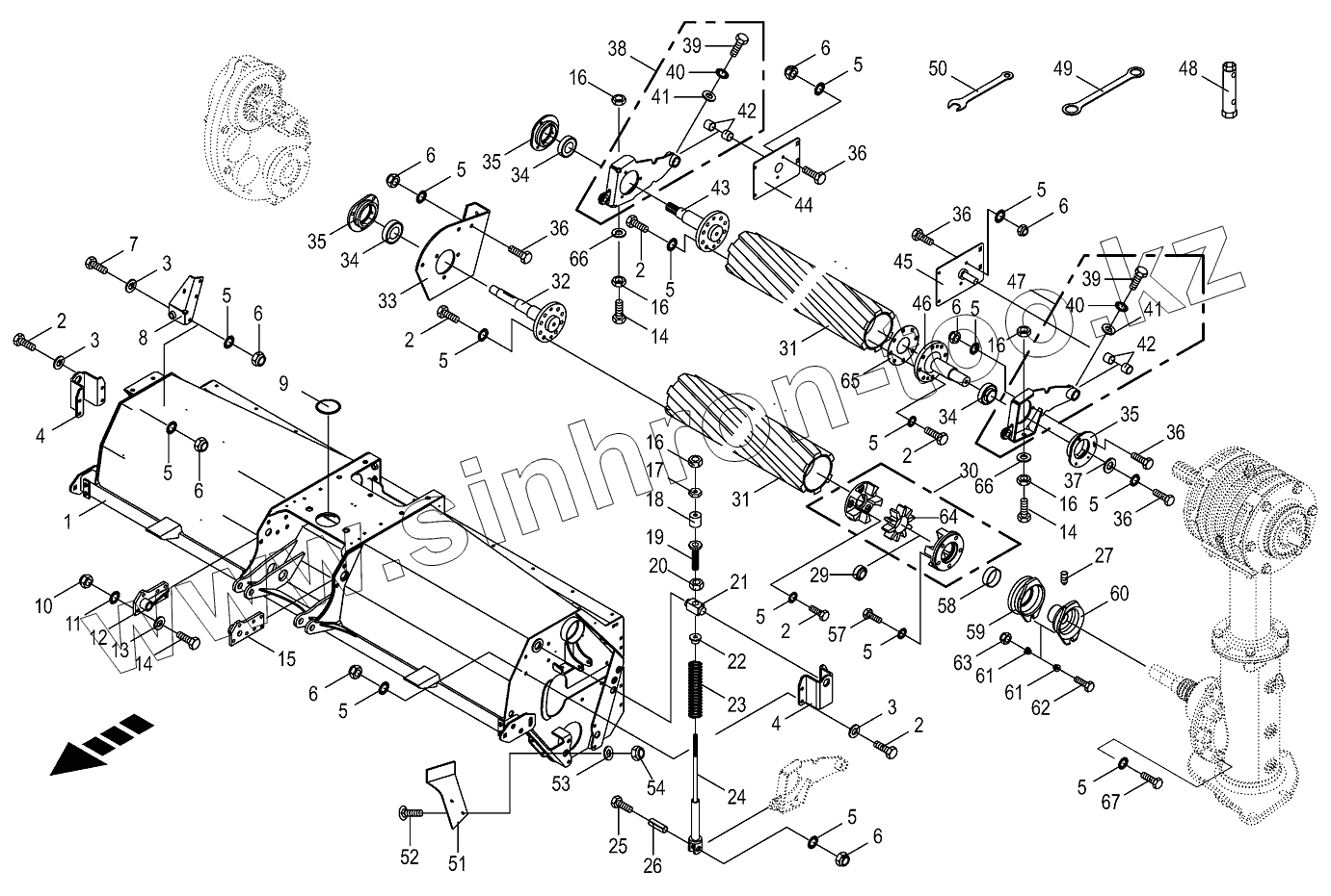 Каталог запасных частей к технике: KRONE BIG-M-420. Roller cond. housing/Roller-lateral