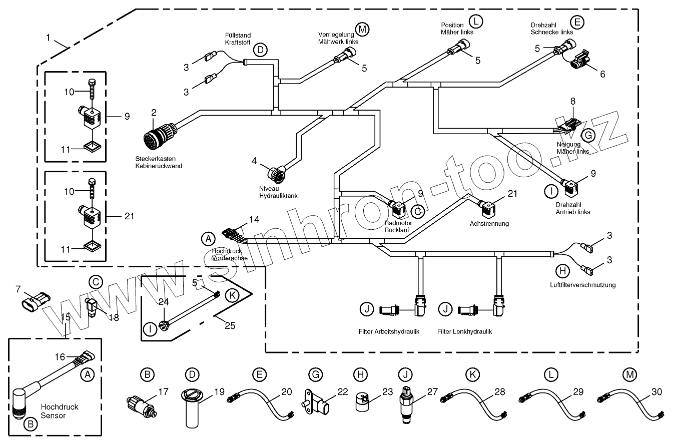 Каталог запасных частей к технике: KRONE BIG-M-420. Wiring Harness-lateral left