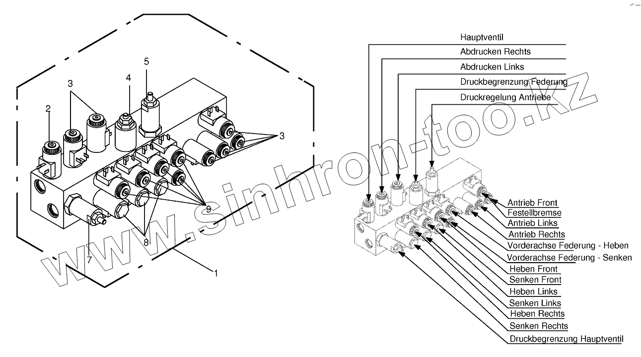 Каталог запасных частей к технике: KRONE BIG-M-420. Working hydraulics-Valve block