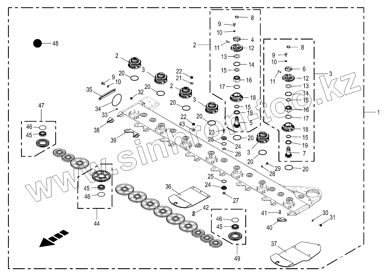 | 49 | 202306760 | Spur wheel Z= 38 assem. w. bearing |