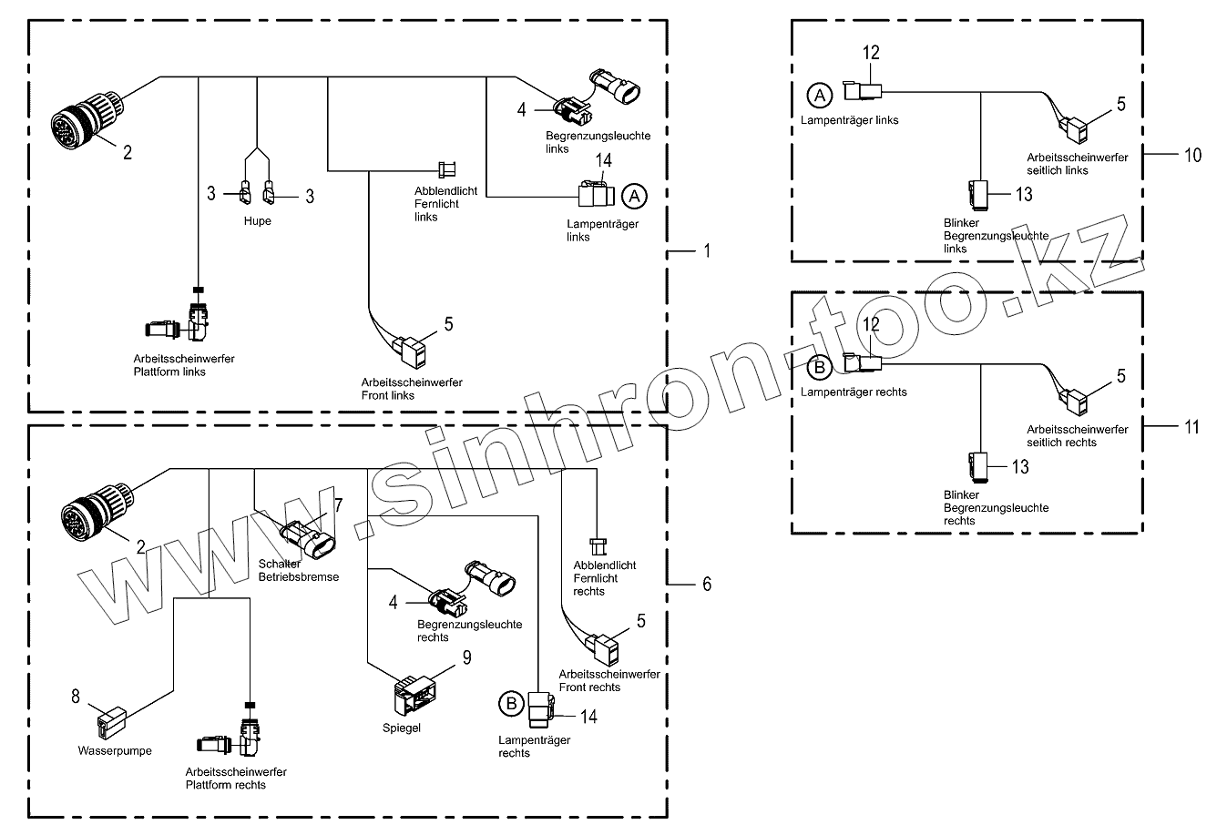Каталог запасных частей к технике: KRONE BIG-M-420. Wiring Harness-lighting-front