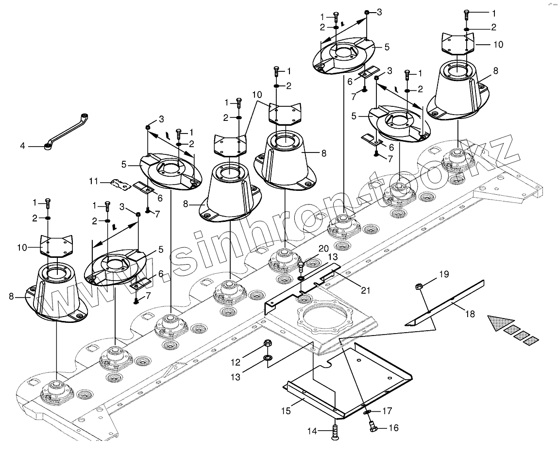 Каталог запасных частей к технике: KRONE BIG-M-I. Cutter bar with blade fastening (CRI)
