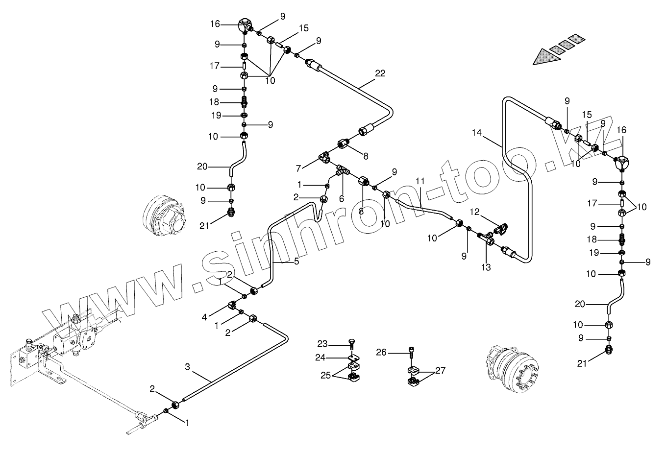 Каталог запасных частей к технике: KRONE BIG-M-I. Hydr.ground drive/rear leakage oil line