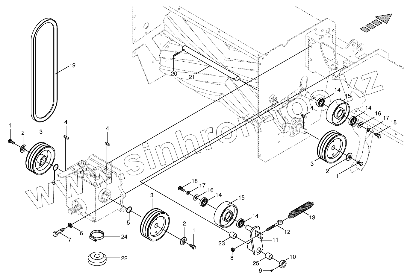 Каталог запасных частей к технике: KRONE BIG-M-I. Roller conditioner drive
