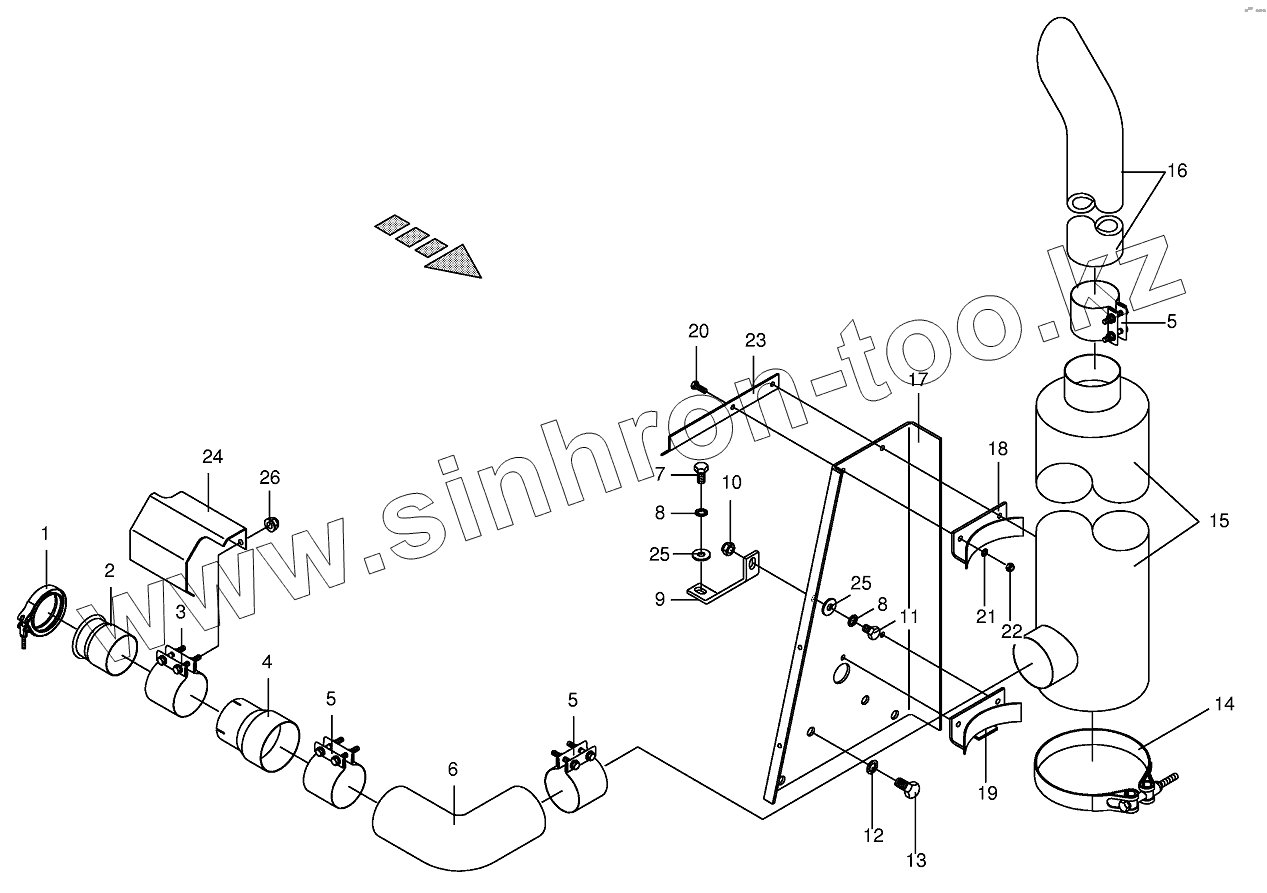 Каталог запасных частей к технике: KRONE BIG-M-I. Silencer assembled