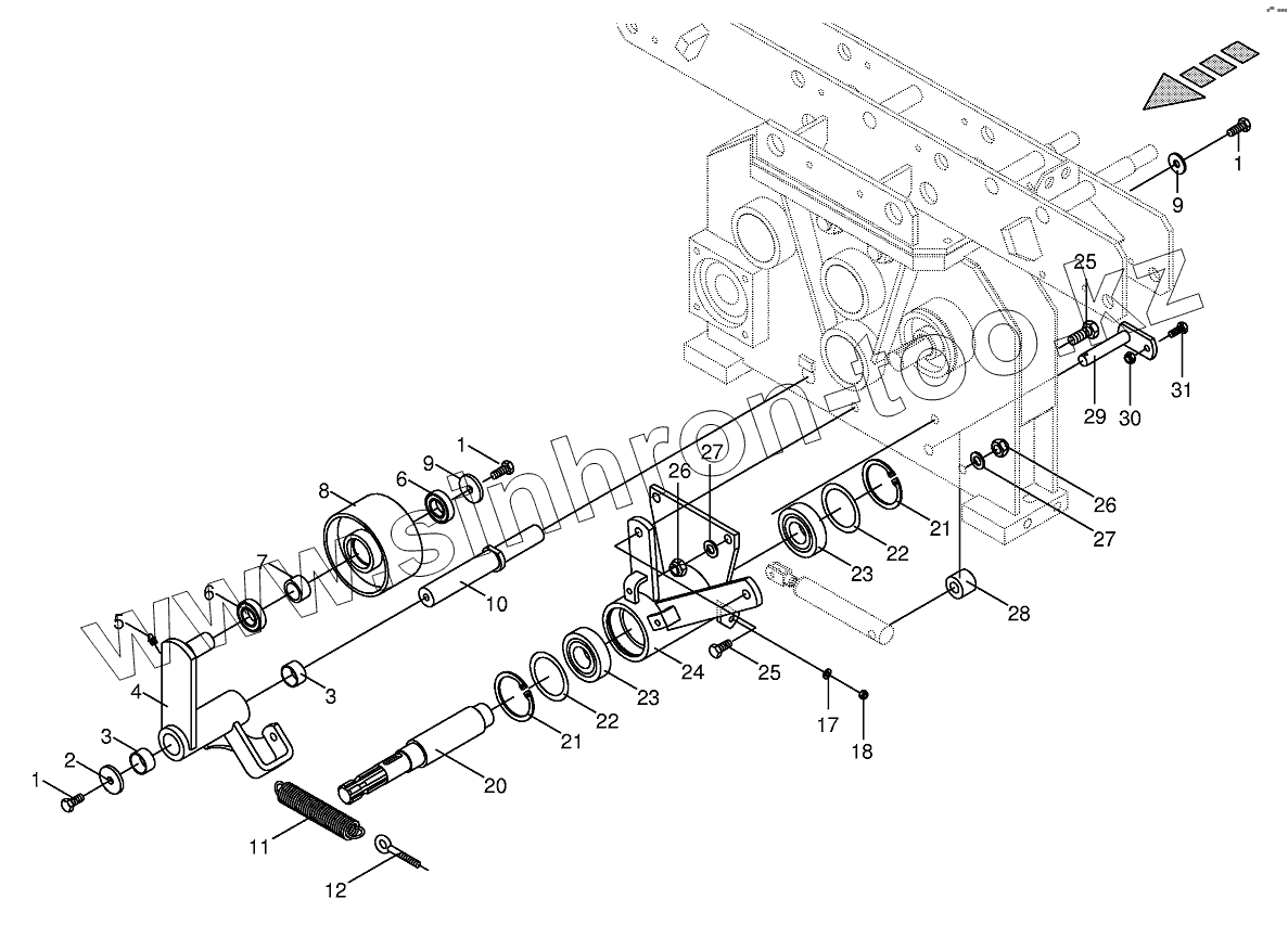 Каталог запасных частей к технике: KRONE BIG-M-I. Tens. device on central gearbox front
