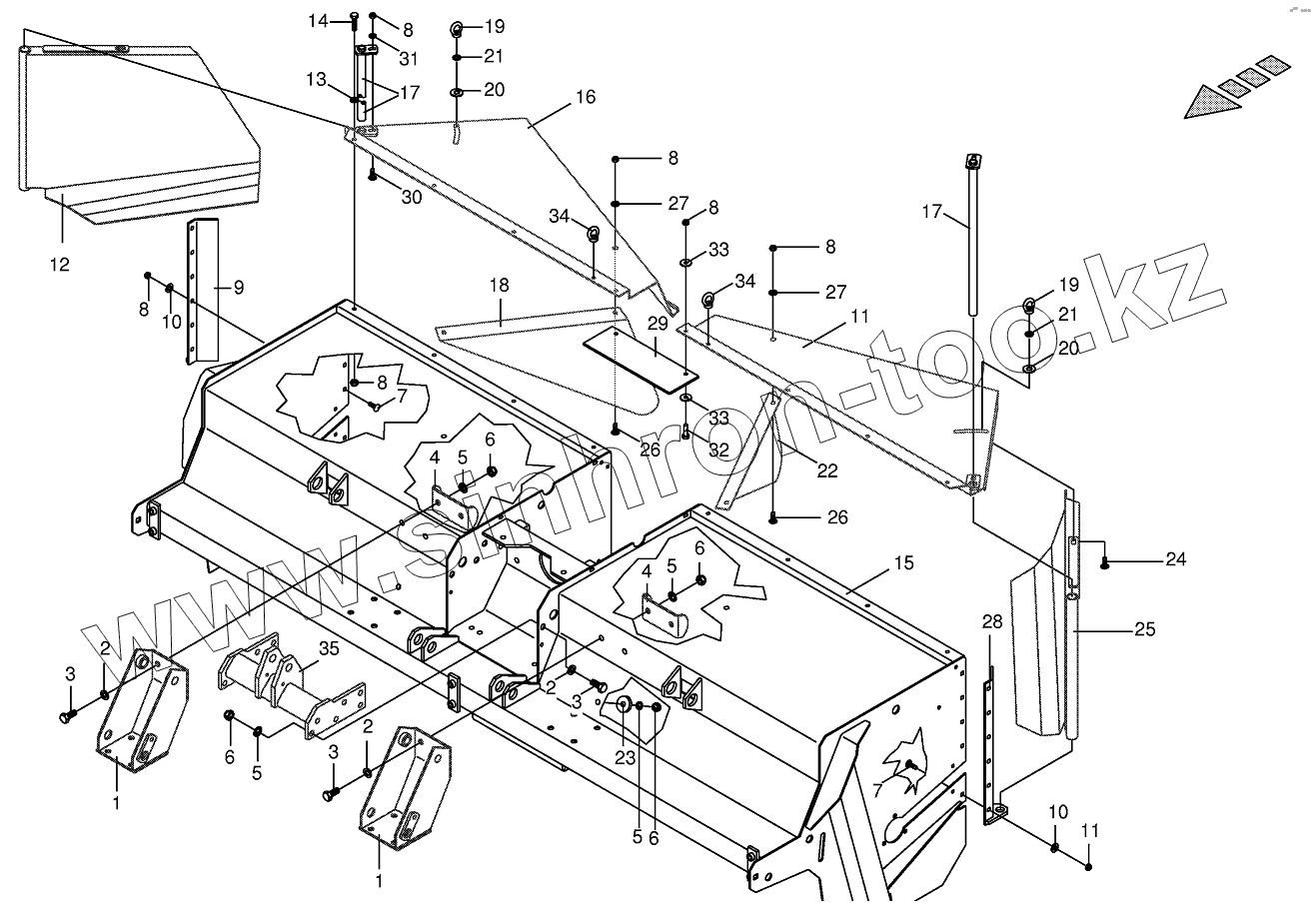 Каталог запасных частей к технике: KRONE BIG-M-I. Tine conditioner housing, assembled