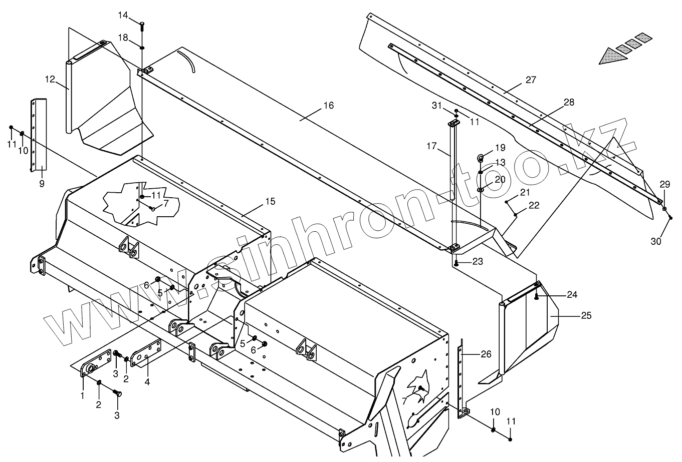 Каталог запасных частей к технике: KRONE BIG-M-I. Tine conditioner housing, assembled