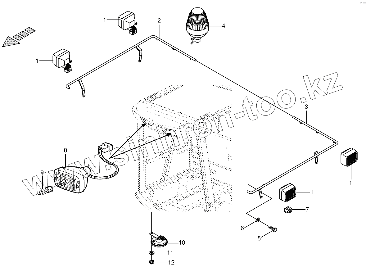 Каталог запасных частей к технике: KRONE BIG-M-I. Works/beacon light / horn