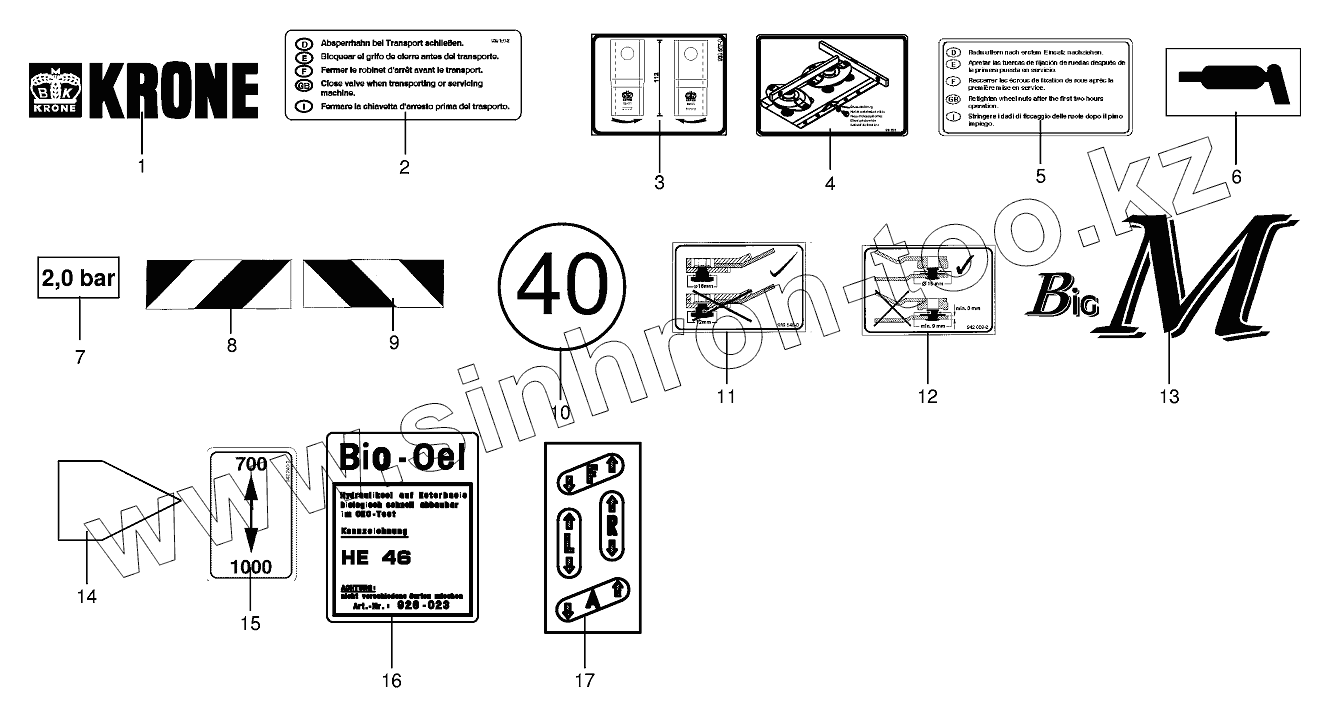 Каталог запасных частей к технике: KRONE BIG-M-I. General information labels