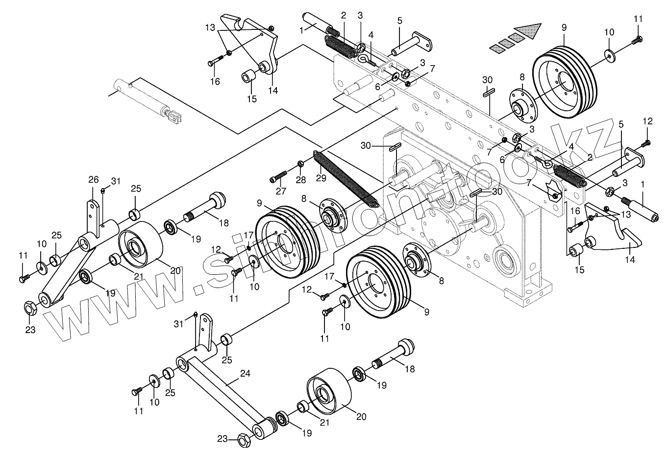 Каталог запасных частей к технике: KRONE BIG-M-I. Tensioning device on central gearbox