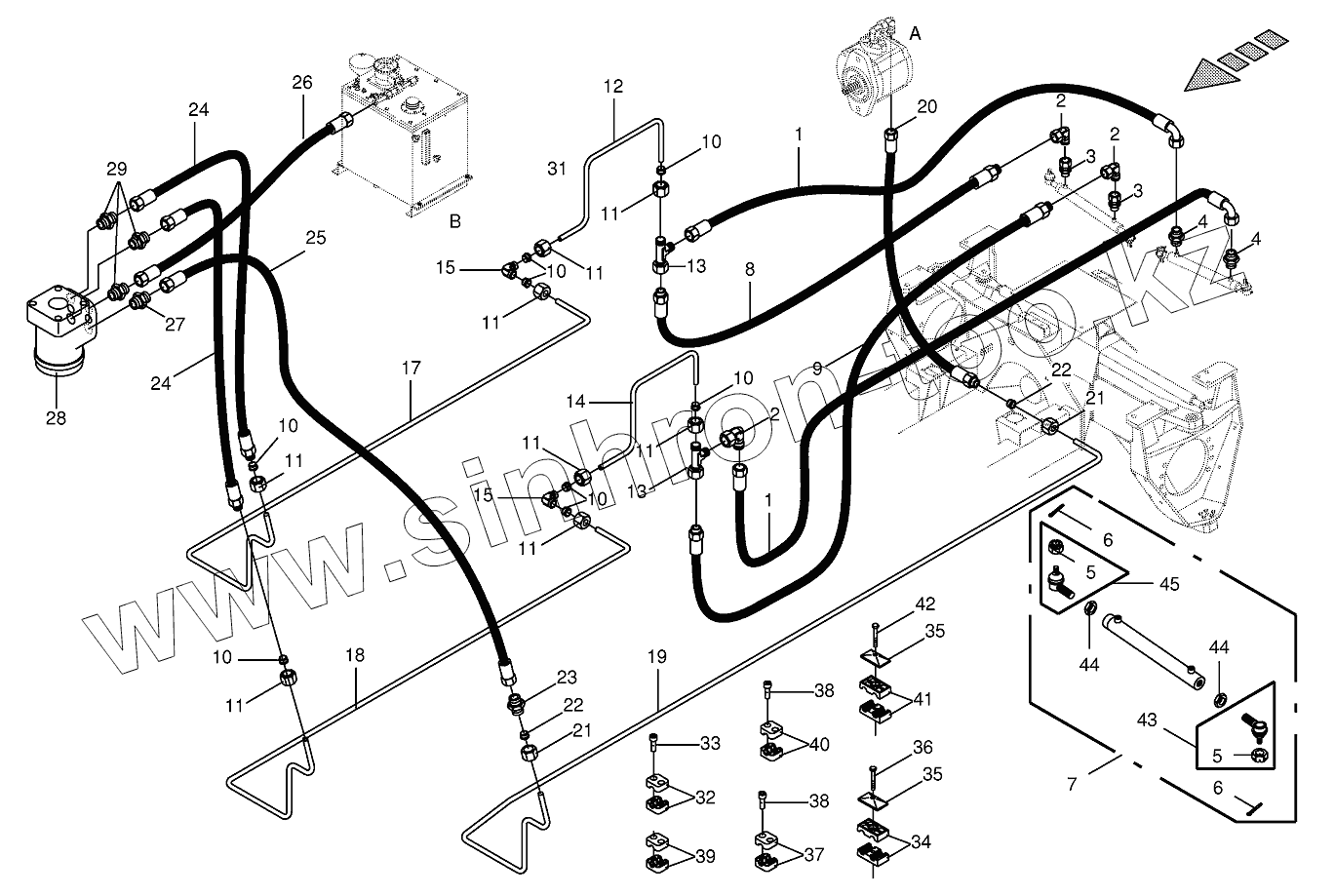 Каталог запасных частей к технике: KRONE BIG-M-I. Working hydr. - hydr.line (steering)