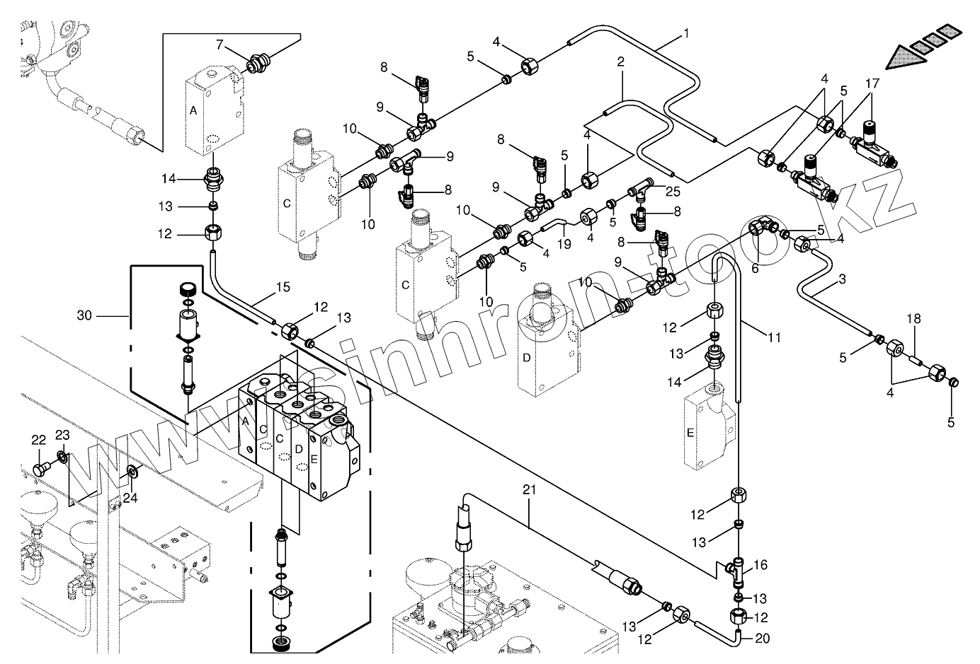 Каталог запасных частей к технике: KRONE BIG-M-I. Working hydraulics - valve block (3x)