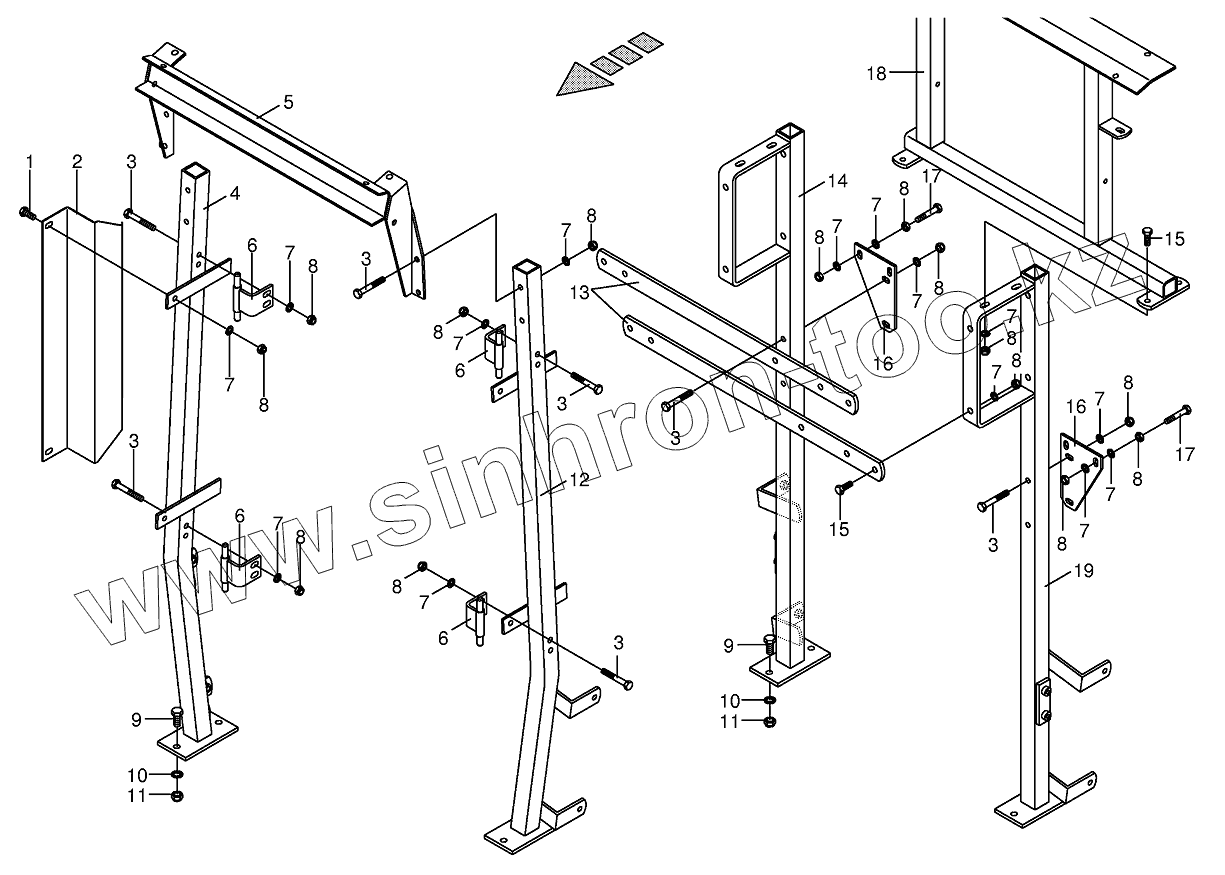 Каталог запасных частей к технике: KRONE BIG-M-I. Guard support front and back installed