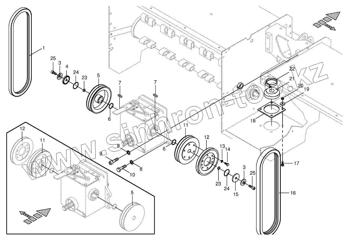 Каталог запасных частей к технике: KRONE BIG-M-I. Main gearbox components-lateral (CV-BSS)