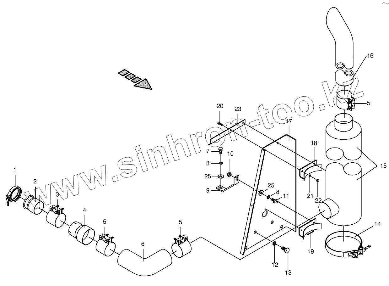 Каталог запасных частей к технике: KRONE BIG-M-I. Silencer assembled