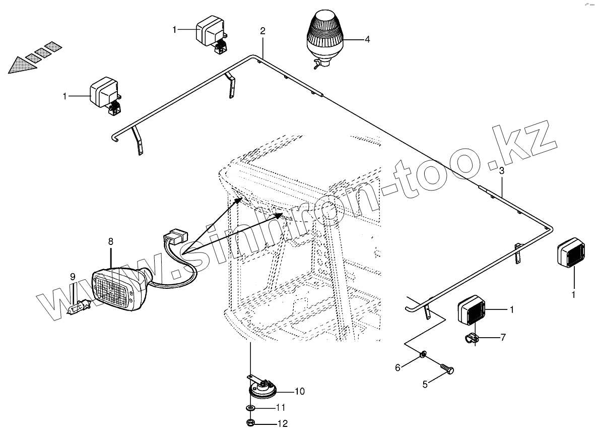 Каталог запасных частей к технике: KRONE BIG-M-I. Works/beacon light / horn