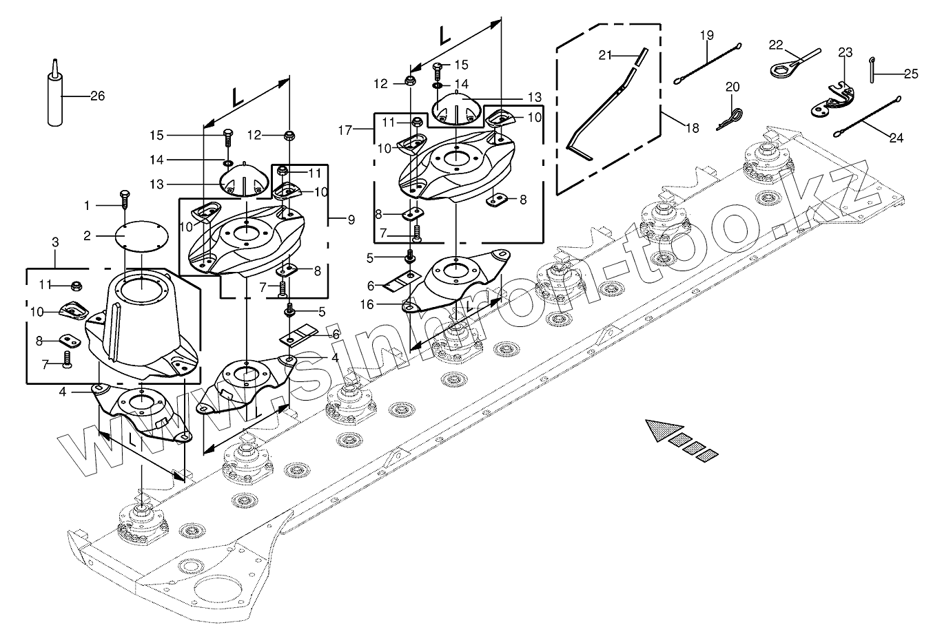 Каталог запасных частей к технике: KRONE BIG-M-II. Blade quick coupler - front-CV