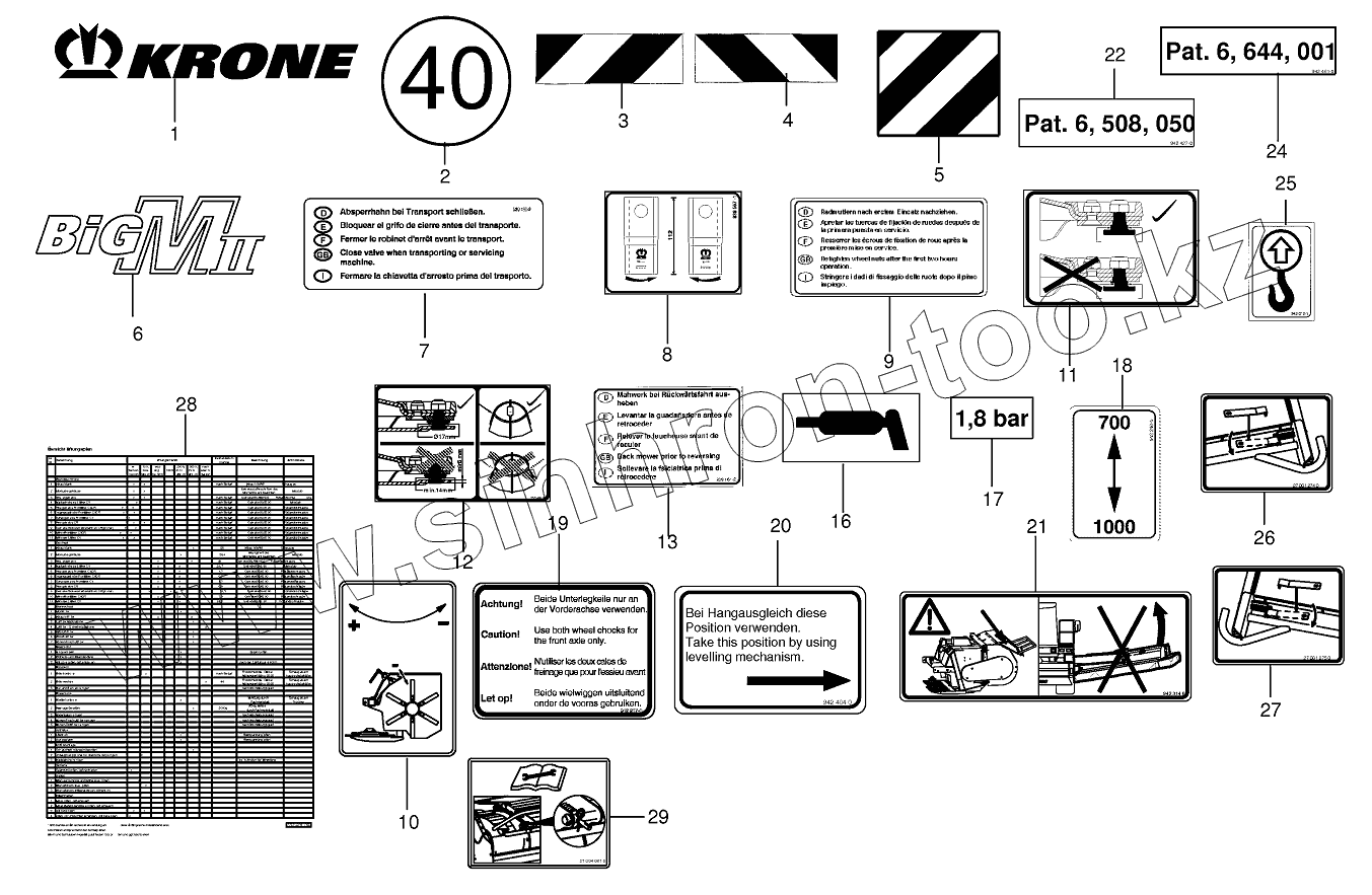 Каталог запасных частей к технике: KRONE BIG-M-II. General information labels