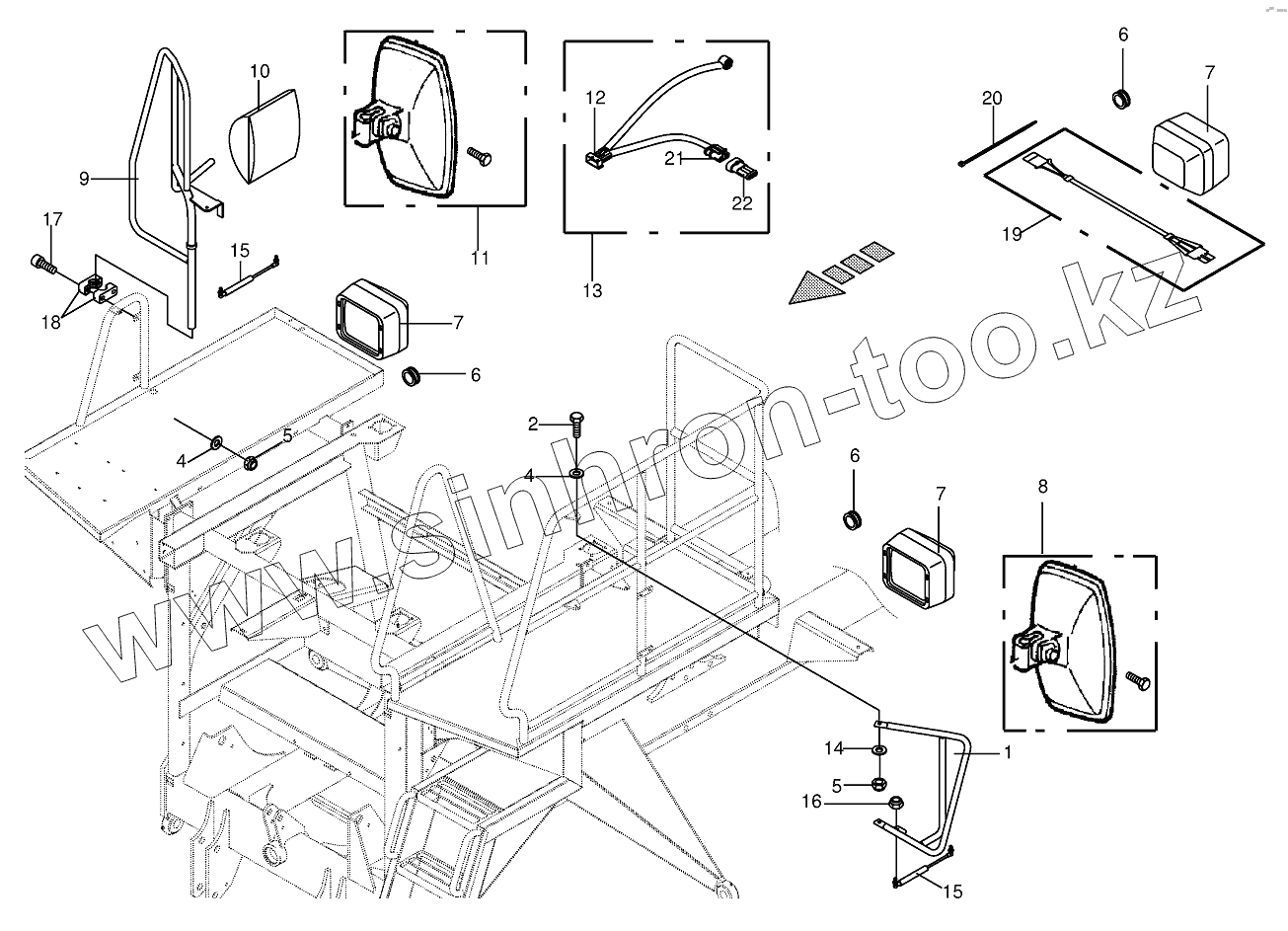 Каталог запасных частей к технике: KRONE BIG-M-II. Rear view mirror /Work light