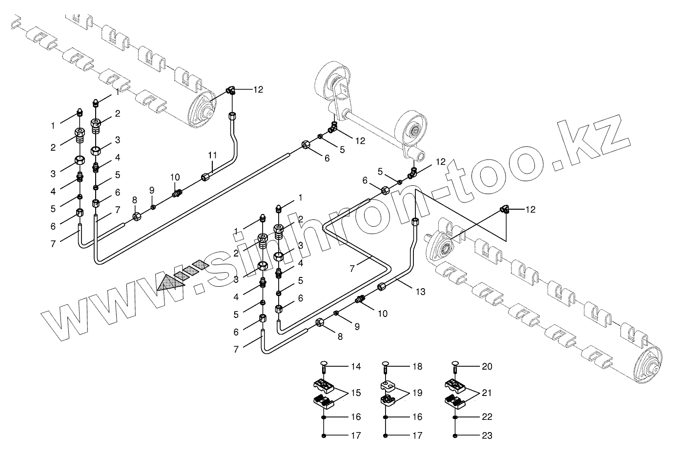 Каталог запасных частей к технике: KRONE BIG-M-II. Tine conditioner Lubricating line