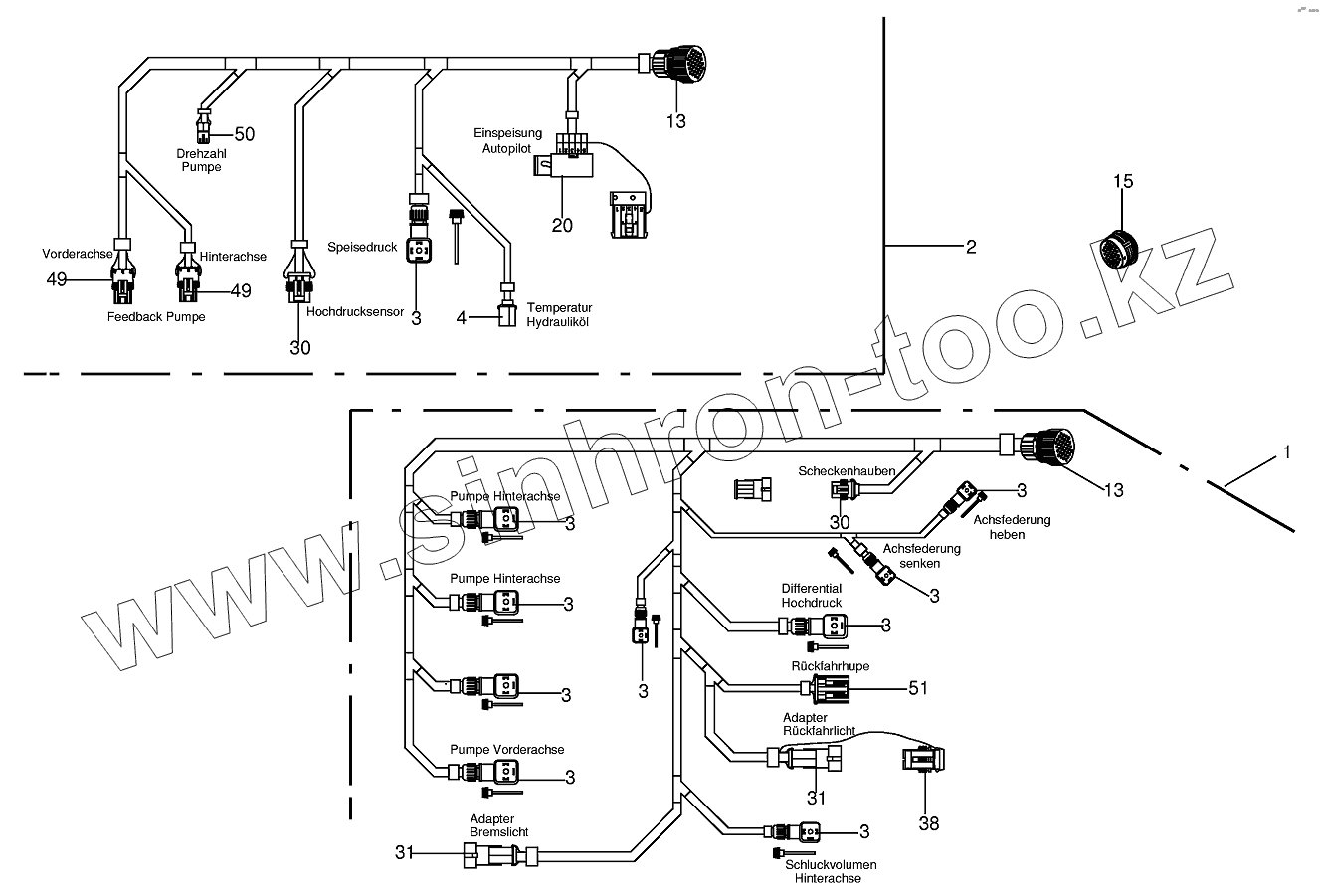 Каталог запасных частей к технике: KRONE BIG-M-II. Wiring harness 1x7 /Wiring harnes 1x8