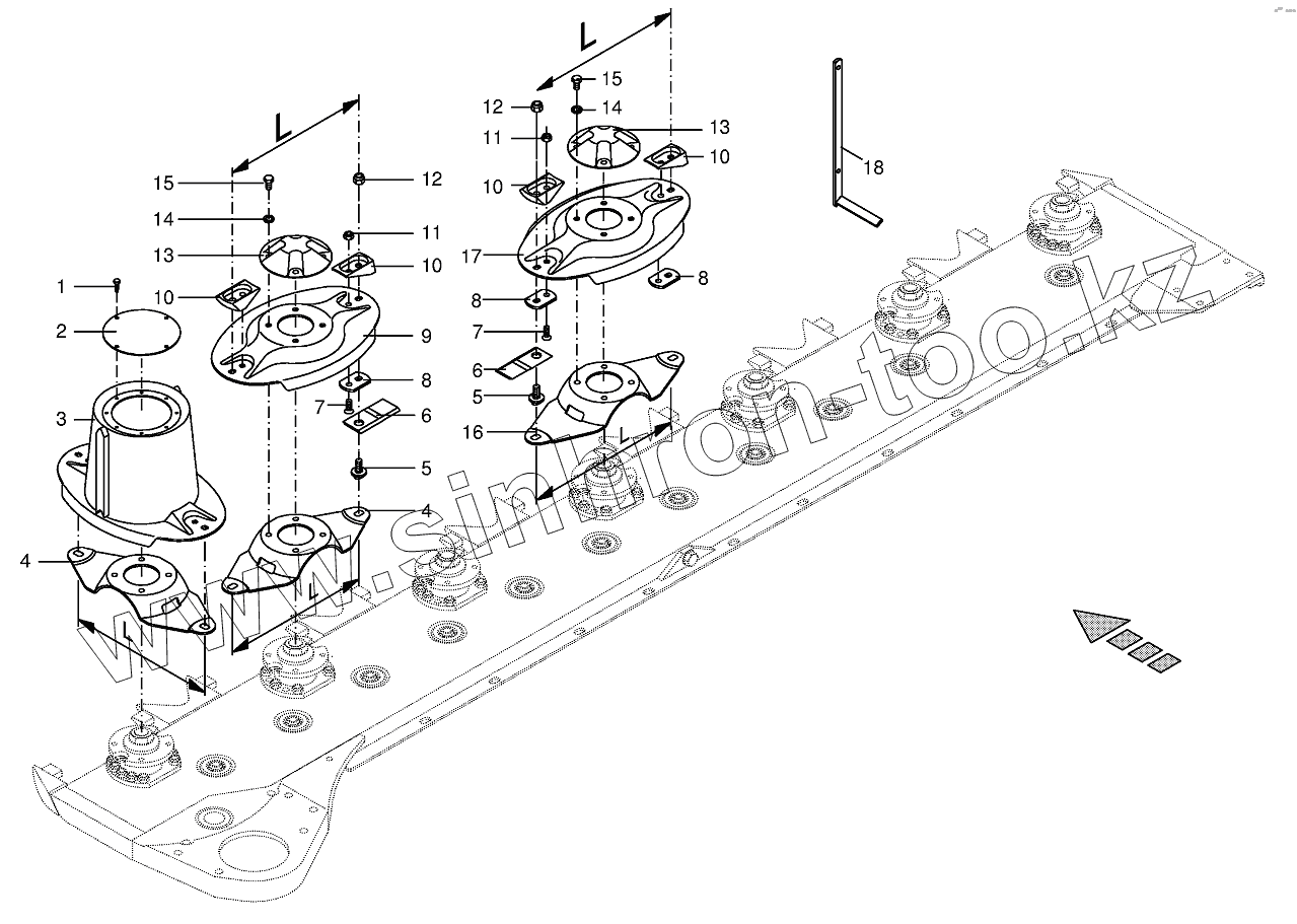 Каталог запасных частей к технике: KRONE BIG-M-II. Cutter bar with quick coupler-front