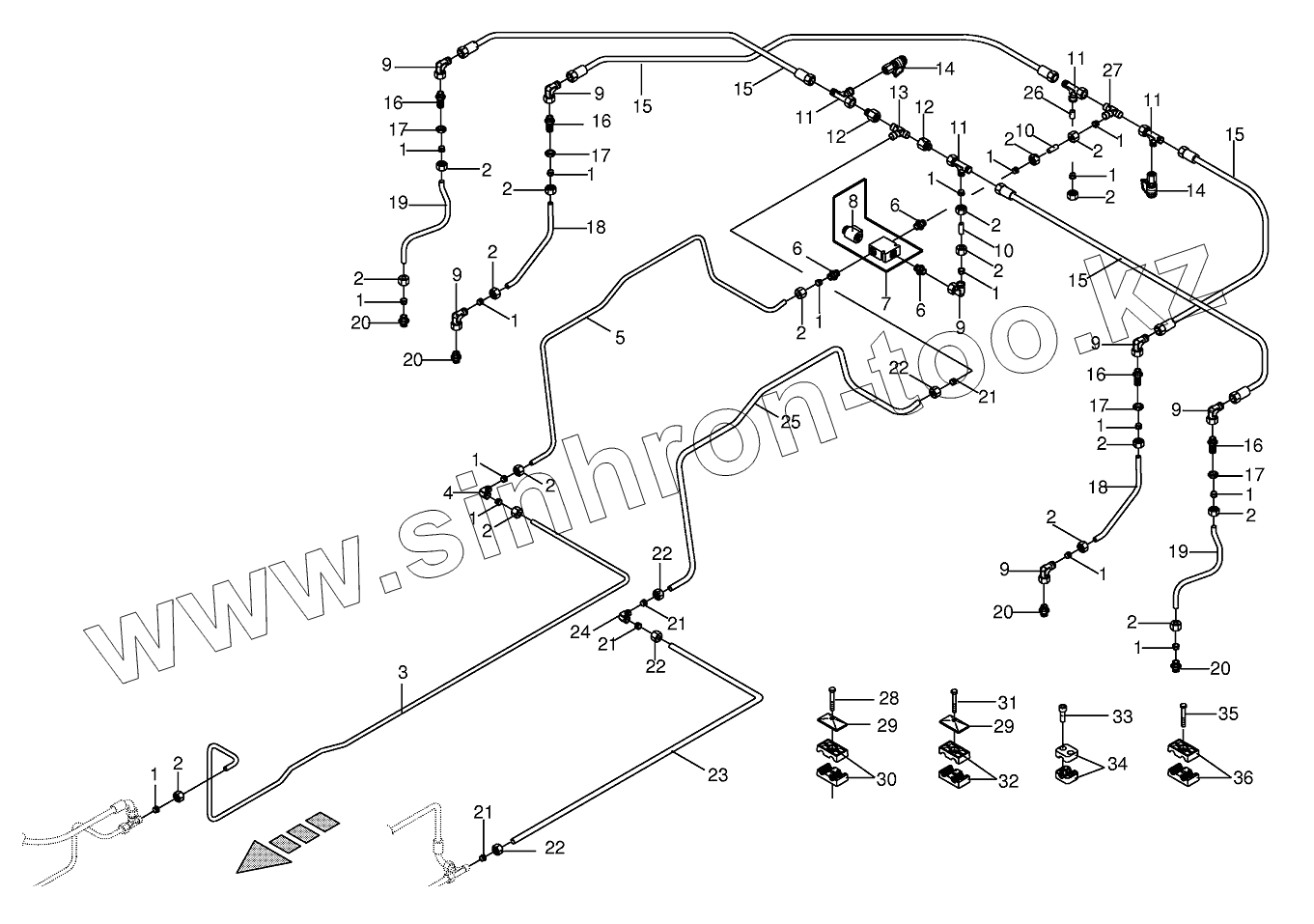 Каталог запасных частей к технике: KRONE BIG-M-II. Hydr.ground drive/pressure oil line-rear