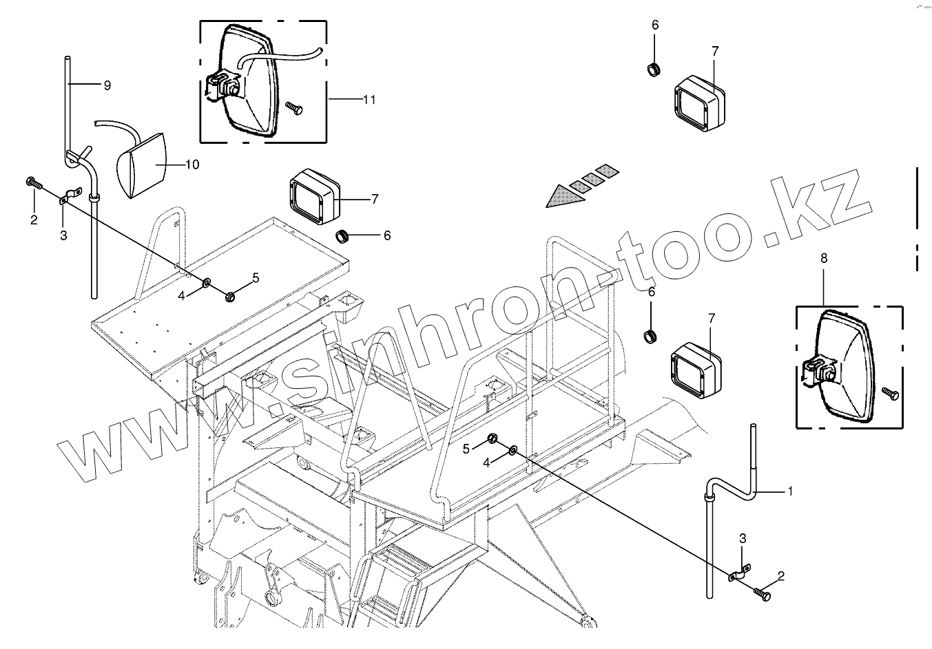 Каталог запасных частей к технике: KRONE BIG-M-II. Rear view mirror/Work light