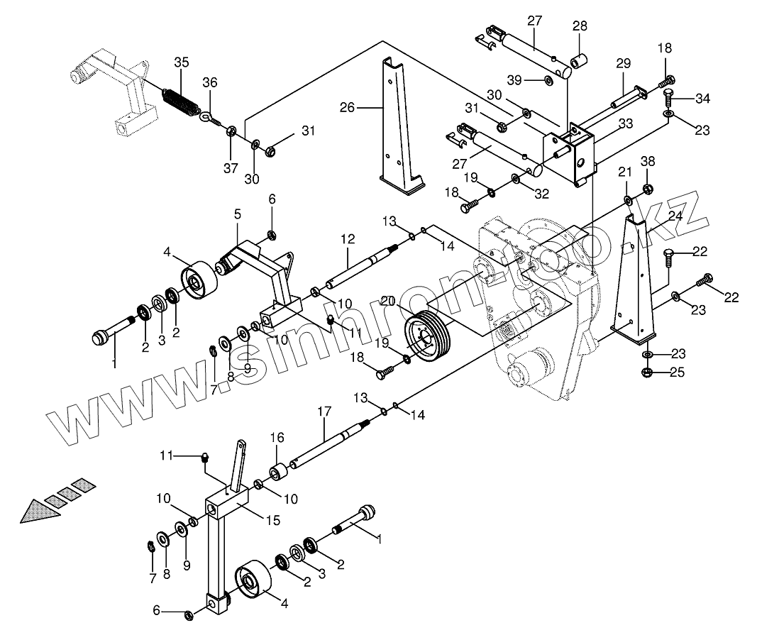Каталог запасных частей к технике: KRONE BIG-M-II. Tensioning device on central gearbox