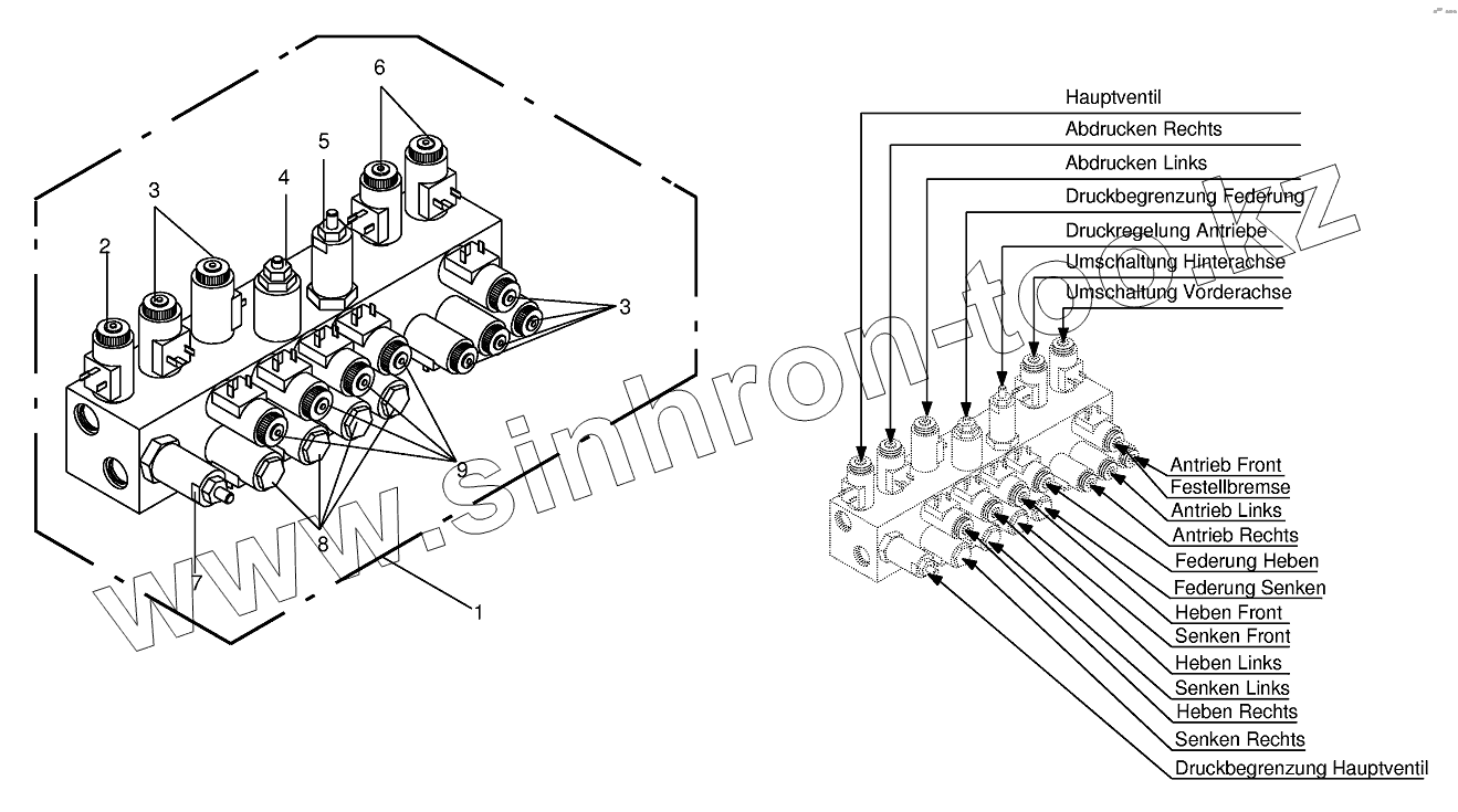 Каталог запасных частей к технике: KRONE BIG-M-II. Working hydraulics-Valve block