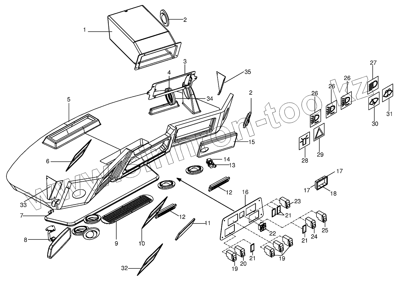 Каталог запасных частей к технике: KRONE BIG-M-II. Control panel (roof)