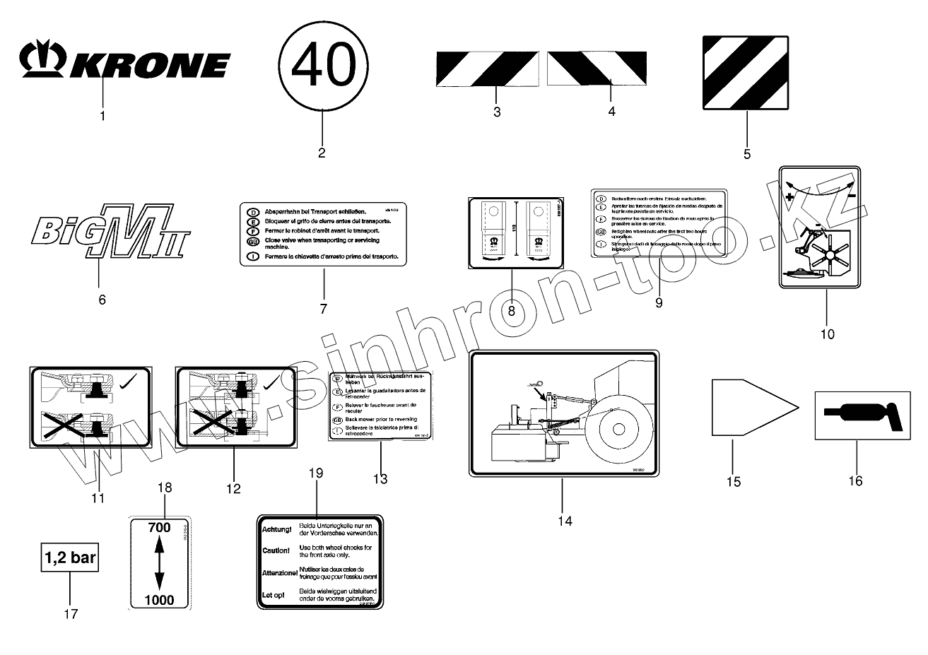 Каталог запасных частей к технике: KRONE BIG-M-II. General information labels